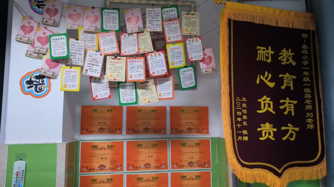 渐渐地,班级里的变化悄然发生:课间追逐的身影少了,主动帮忙的身影多了;随手乱扔的纸屑少了,整理书包的认真模样多了。孩子们每天都会围着墙壁驻足,这里的每一张卡片、每一句话、每一幅画,都像一位无声的老师,用温柔的方式传递着文明与善意。