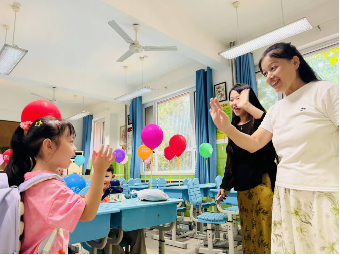 开学初,面对孩子们课间追逐打闹、物品摆放杂乱的问题,蒋娟没有反复说教,而是琢磨着怎么让教育悄悄“藏”进环境里。她和孩子们一起动手,把教室内外分成了多个板块:“室内夸夸墙”上悬挂着老师给予孩子们每一次成长中的小小期盼与进步,老师用温暖真诚的赞美,引导着学生去探寻美、追逐美、展现美。